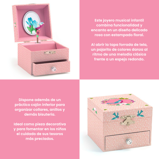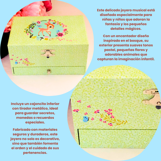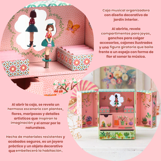 Caja de música joyero infantil con jardín secreto – Joyero musical con cajones y bailarina