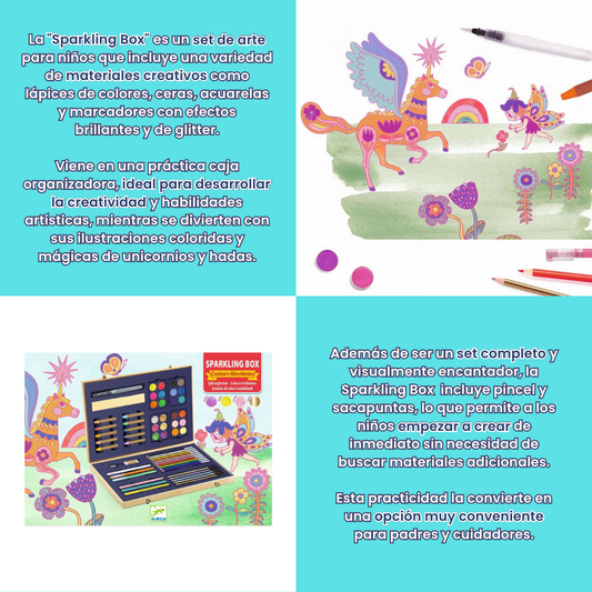 Maletín artístico “Sparkling Color Box” de Djeco – Set completo de arte con purpurina y acuarelas para niños y niñas
