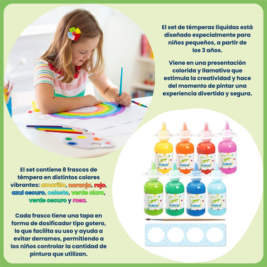 Pack témperas infantiles Djeco – 8 botes de pintura para niños y niñas (+3 años)