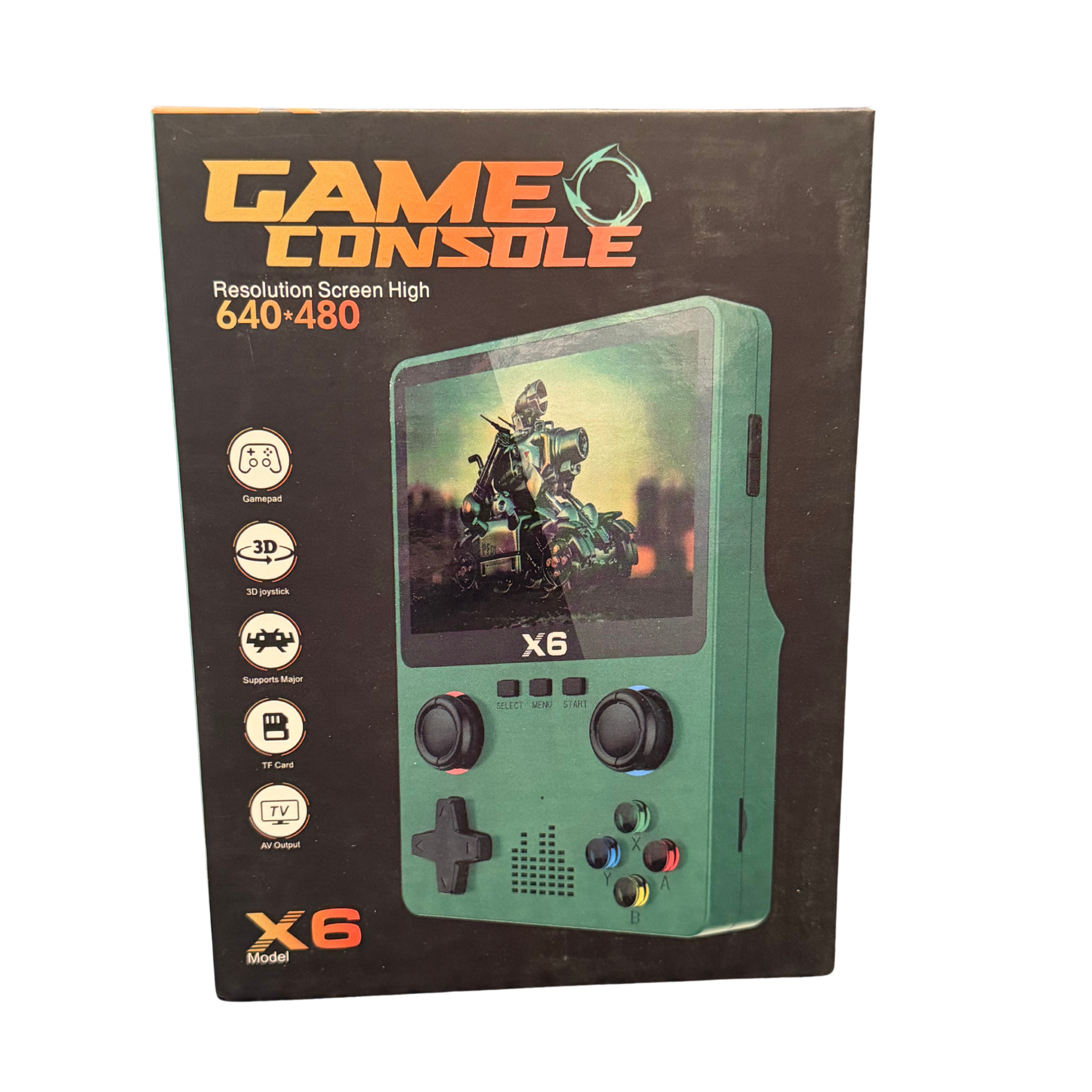 Consola portátil X6 con pantalla de 640×480, juegos clásicos precargados y diseño retro. Incluye joystick 3D, ranura para tarjeta TF y salida AV para conectar a la TV. Ideal para revivir los mejores juegos de tu infancia.